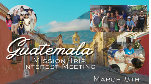 Immediately following the service in the fellowship hall, there will be a meeting for anyone who maybe interested in our next Mission Trip to Guatemala.